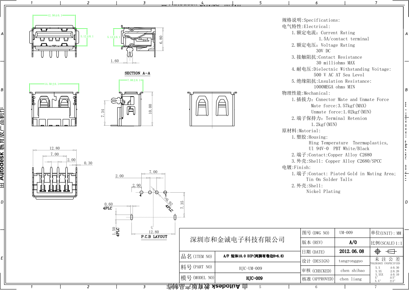 HJC-UM-009 AF90度前插后插卷边灰胶无耳H=6.8 L=10.0