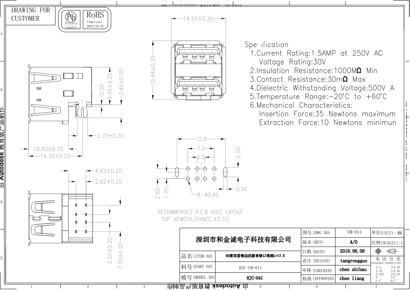 HJC-UM-011 AF 90度沉板双层卷边橙胶L=17.0