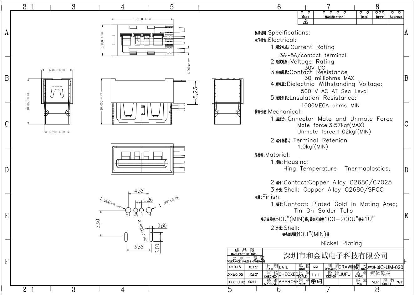 HJC-UM-020 AF90度侧插半包大电流蓝胶L=10.0