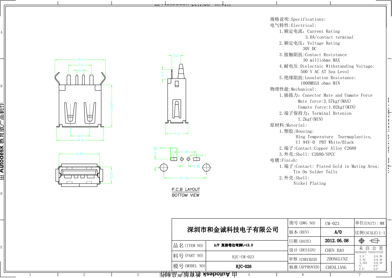 HJC-UM-022 AF90度后插后插直边绿胶无耳H=6.3 L=10.0