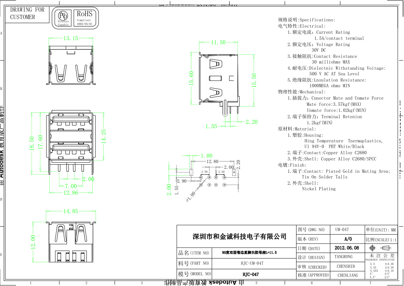 HJC-UM-047AF 90度双层卷边直脚白胶母座L=11.5