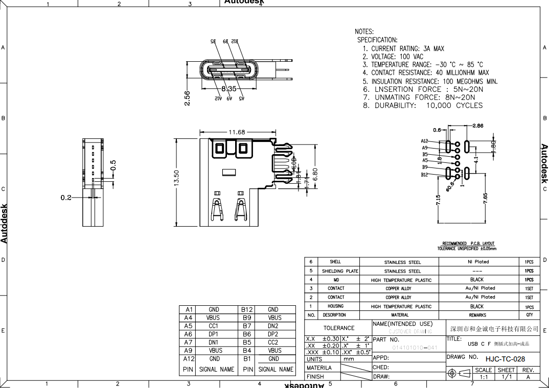 HJC-TC-028 USB TYPE-C-6P 侧插加高母座