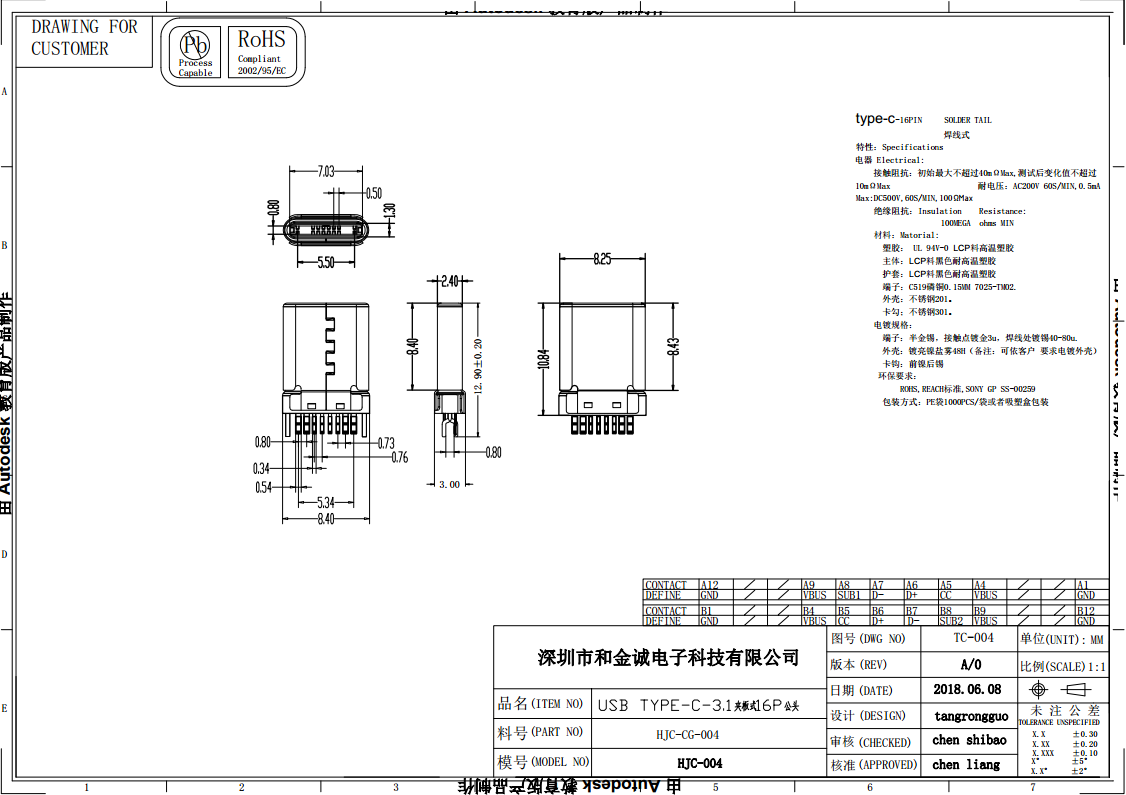HJC-CG-004 USB TYPE-C-3.1 splint type 16P male